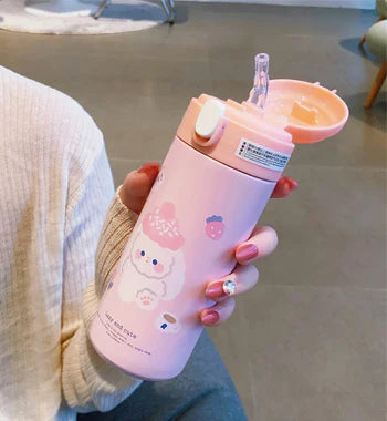 380ML Thermos Vacuum Flask Cute Cartoon 304 Stainless Steel Thermal Water Bottle Insulated Straw Cups Tumbler Drinkware